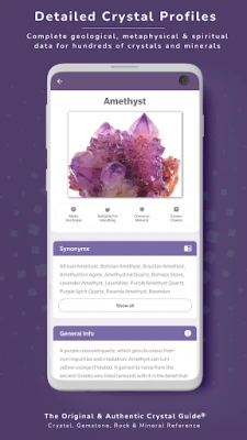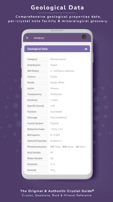 Dyk ned i krystallernes, ædelstenenes og mineralernes fascinerende verden med Crystal Guide® Pocket Edition, den prisvindende og autentiske digitale ledsager, der har været det foretrukne valg for entusiaster i over et årti. Uanset om du er en erfaren samler, professionel geolog, krystalhealer eller blot en nysgerrig nybegynder, tilbyder Crystal Guide® Pocket Edition en uovertruffen skattekiste af viden. Oplev en verden, hvor videnskab møder mystik, og hvor hver sten fortæller sin egen unikke historie, omhyggeligt kurateret af M.Stevens gennem årelang dedikation.