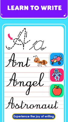 Kernepunktet i Cursive App er dens intuitive tilgang til indlæring. Her får du adgang til et væld af dynamiske skriveark, hvor bogstaver, tal og ord kan spores med præcise vejledninger, der sikrer korrekte strøg og sekvenser fra start til slut. Appen går ud over den traditionelle praksis ved at integrere elementer, der forbedrer finmotorikken og hånd-øje-koordinationen mærkbart. Ud over at perfektionere dine skrivefærdigheder introduceres du også til bogstavernes og tallenes lyde og udtale, hvilket skaber en helhedsorienteret læringsoplevelse.