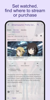 Hold ubesværet styr på dit underholdningsforbrug. Markér afsnit og film, du har set, og følg dit fremskridt i serier, så du altid ved, hvor du slap, og hvornår nye afsnit lander. For den avancerede seer tilbyder SeriesGuide en dyb integration med Trakt, der giver dig mulighed for at synkronisere dit indhold, se din historik, udforske hvad andre ser, og endda dele dine egne bedømmelser og kommentarer. Ønsker du at have adgang til dine lister og din fremskridt på tværs af flere enheder, understøtter UweTrottmanns SeriesGuide Cloud-synkronisering (abonnement kræves).