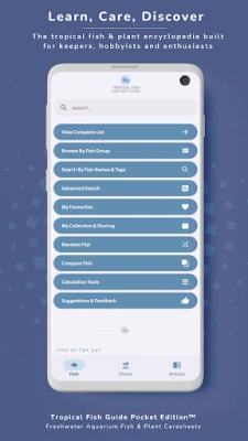 Få den prisvindende lommereference for tropiske ferskvandsfisk og vandplanter. Lær om korrekt pleje, fakta, biologiske data og kompatibilitet for hundredvis af arter. Perfekt til alle aldre og erfaringsniveauer inden for akvariehobbyen.